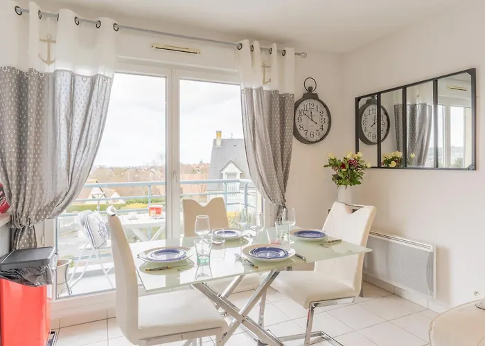 Deze accommodatie kan u voorzien van een keuken uitgerust met een oven en een vaatwasser. L'Horizon De La Touques Appartement ligt op rijafstand van 10 minuten van Deauville-Normandie luchthaven. Het appartement biedt een terras.